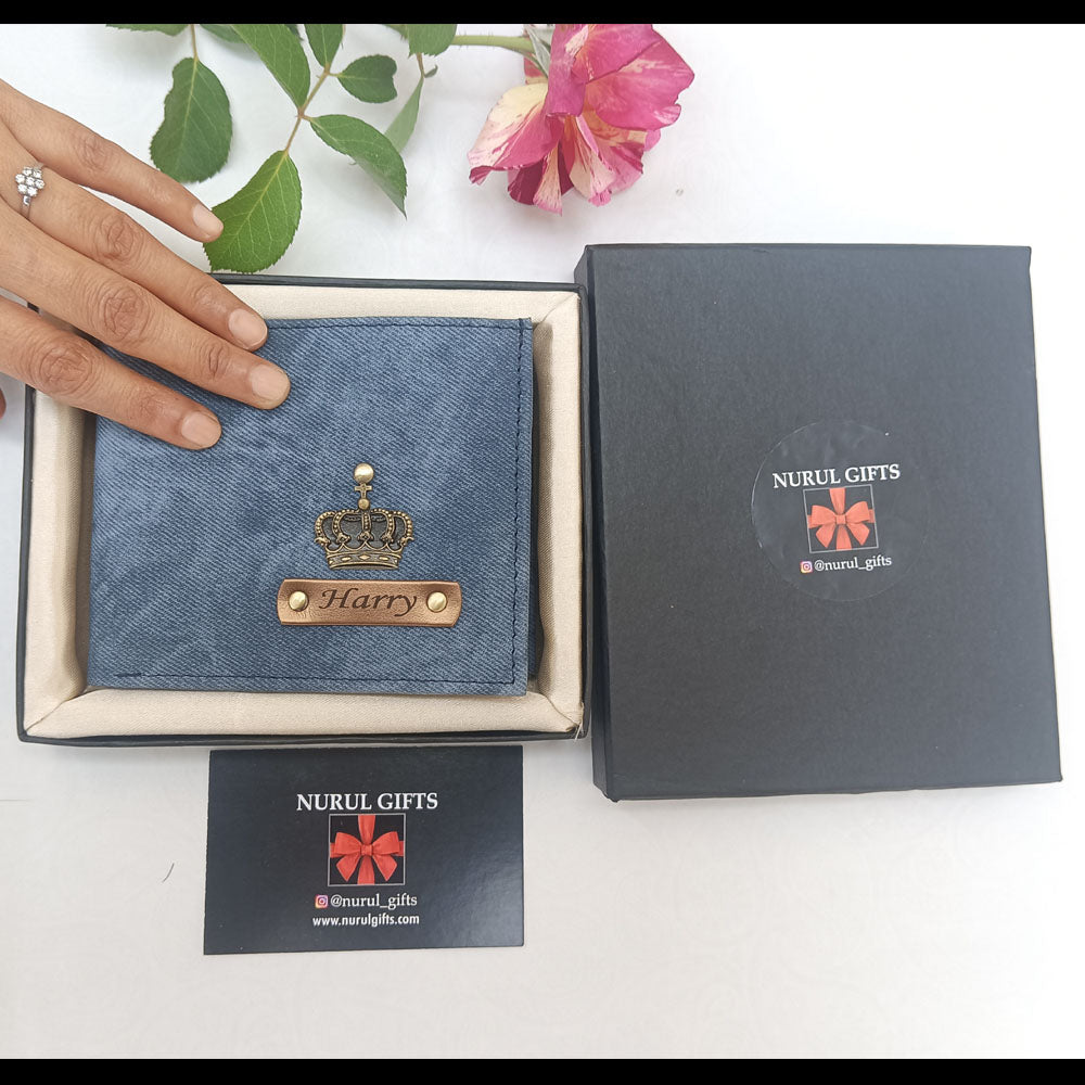 Leather Denim Men's Wallet With Name & Charm